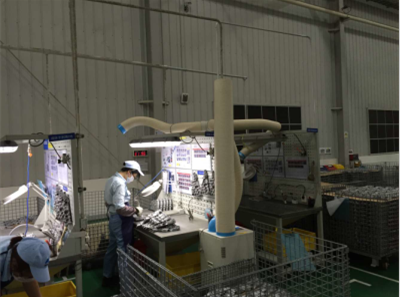解决方案:使用冬夏SPC-407开云手机在线登陆入口机型,排热管延长至2M,冷风管延长至3M并加装Y型三通,一台机器供两个工位使用。