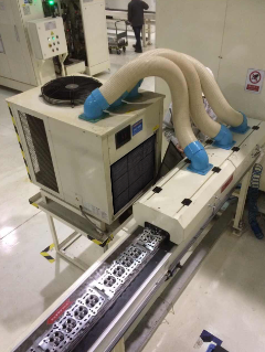 客户诉求:汽车发动机缸体生产时物件温度过高,需在短时间内快速降温,生产速度。